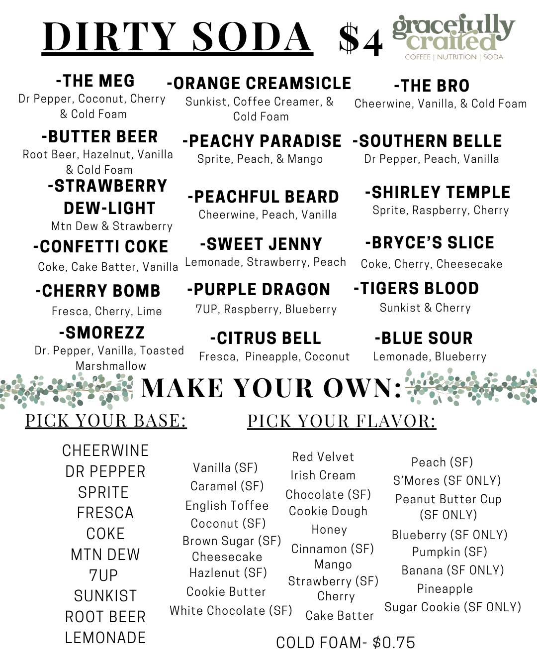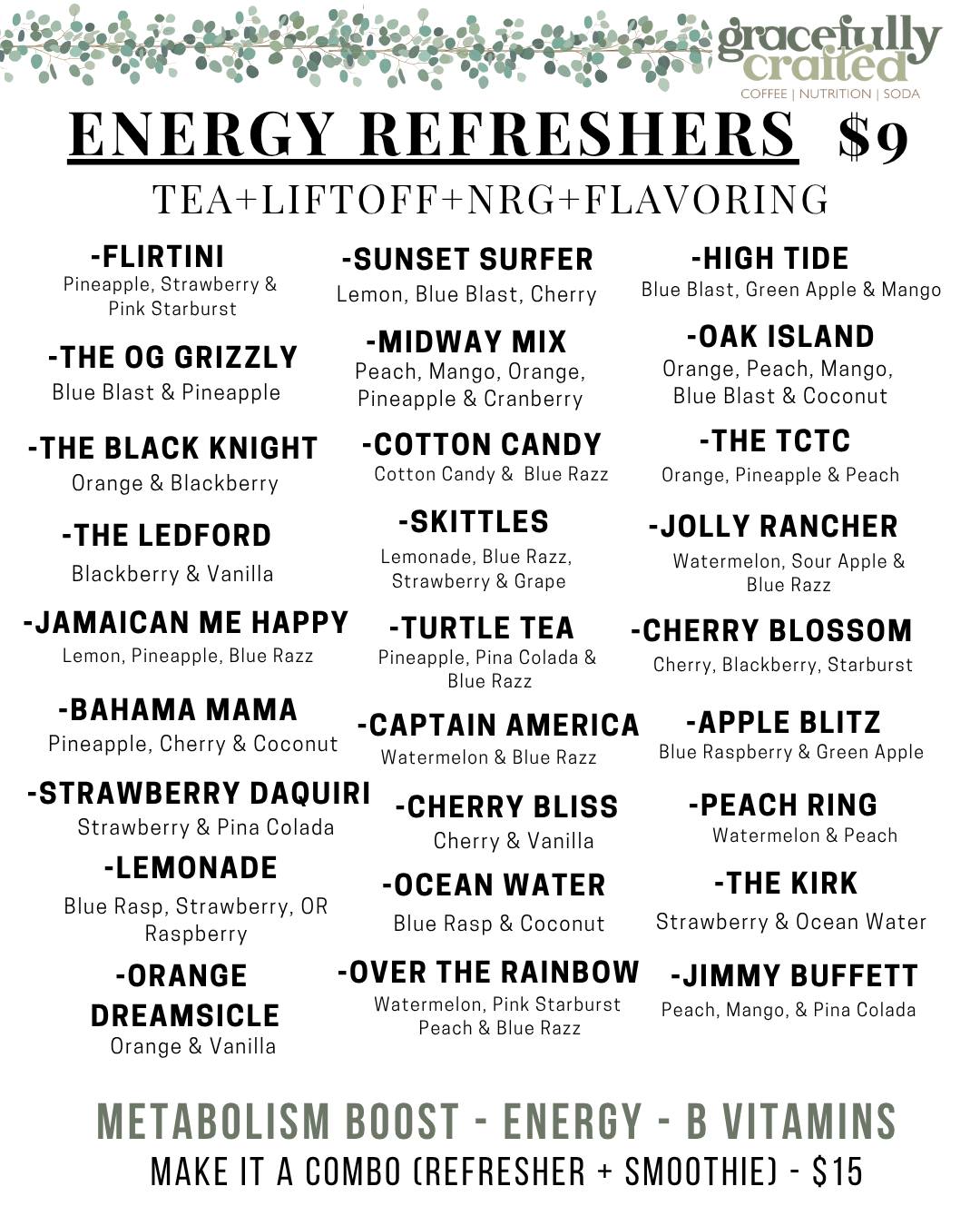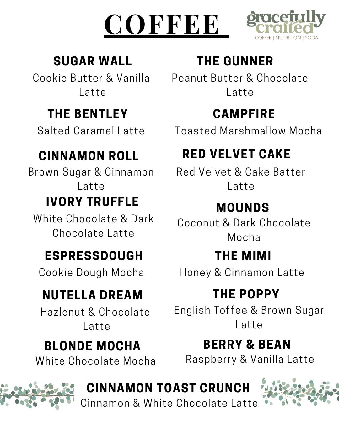 Every drink at Gracefully Crafted is made with attention to detail. Whether you’re here for your morning routine, a midday boost, or something simple to enjoy while driving through, our menu is built to give you dependable quality, clean flavors, and drinks that match your pace.